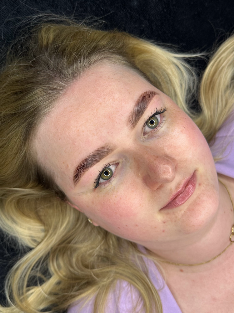 We verven de wenkbrauwen met de Hybrid tint, dit is bedoeld voor de meiden die dagelijks hun wenkbrauwen tekenen. Dit blijft namelijk 7 dagen op de huid en gemiddeld 6 weken op de haartjes. Dit geeft een intensere look.